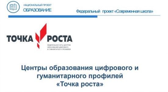 С 1 сентября 2019 на базе нашей школы начинает внедряться федеральный проект "Современная школа" национального проекта «Образование» в форме Центра образования цифрового и гуманитарного профилей "Точка роста". Совокупность образовательных организаций, на базе которых создаются Центры образования цифрового и гуманитарного профилей «Точка роста», составит федеральную сеть Центров образования цифрового и гуманитарного профилей «Точка роста». Основными целями Центра являются: - формирование у обучающихся современных технологических и гуманитарных навыков, в том числе по предметным областям «Технология», «Информатика», «Основы безопасности жизнедеятельности», других предметных областей, а также внеурочной деятельности и в рамках реализации дополнительных общеобразовательных программ. Задачи Центра: - обновление содержания преподавания основных общеобразовательных программ по предметным областям «Технология», «Информатика», «Основы безопасности жизнедеятельности» на обновленном учебном оборудовании; - создание условий для реализации разноуровневых общеобразовательных программ дополнительного образования цифрового, естественнонаучного, технического и гуманитарного профилей; - создание целостной системы дополнительного образования в Центре, обеспеченной единством учебных и воспитательных требований, преемственностью Содержания основного и дополнительного образования, а также единством методических подходов; - формирование социальной культуры, проектной деятельности, направленной не только на расширение познавательных интересов школьников, но и на стимулирование активности, инициативы и исследовательской деятельности обучающихся; - совершенствование и обновление форм организации основного и дополнительного образования с использованием соответствующих современных технологий; - организация системы внеурочной деятельности в каникулярный период, разработка и реализация образовательных программ для пришкольных лагерей; - информационное сопровождение деятельности Центра, развитие медиаграмотности у обучающихся; - организационно-содержательная деятельность, направленная на проведение различных мероприятий в Центре и подготовку к участию обучающихся Центра в мероприятиях муниципального, областного и всероссийского уровня; - создание и развитие общественного движения школьников на базе Центра, направленного на популяризацию различных направлений дополнительного образования, проектную, исследовательскую деятельность. - развитие шахматного образования; - обеспечение реализации мер по непрерывному развитию педагогических и управленческих кадров, включая повышение квалификации и профессиональной переподготовки сотрудников и педагогов Центра, реализующих основные и дополнительные общеобразовательные программы цифрового, естественнонаучного, технического, гуманитарного и социокультурного профилей В центре «Точки роста» будет осуществляться единый подход к общеообразовательным программам, составленным в соответствии с новыми предметными областями Технология, Информатика, ОБЖ. Изменится содержательная сторона предметной области «Технология», в которую будут введены новые образовательные компетенции: 3D-моделирование, прототипирование, компьютерное черчение, технологии цифрово